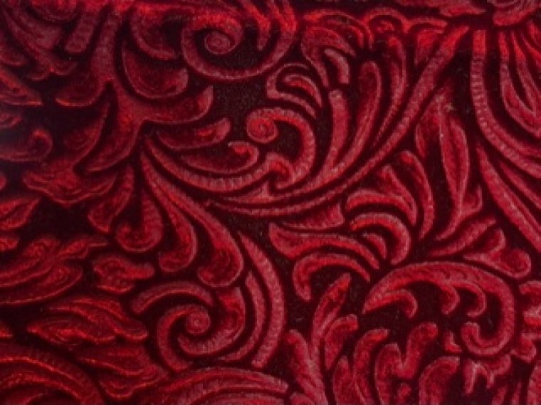 This magnificent Gauffrage in deep, deep red/burgundy.