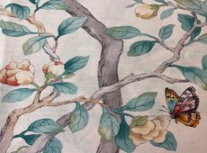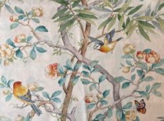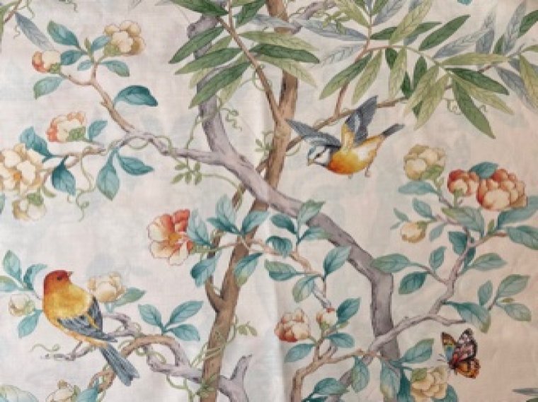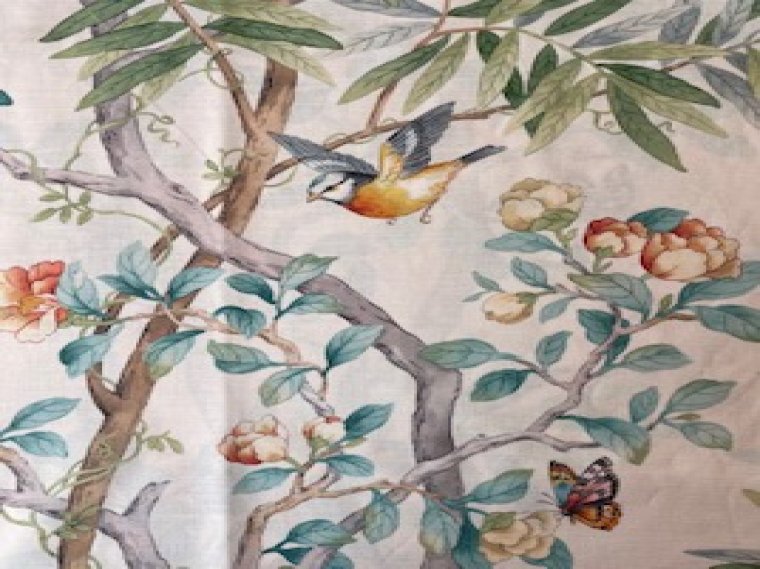 Floral Fabric with birds, butterflies, cotton for upholstery, drapes, bedroom