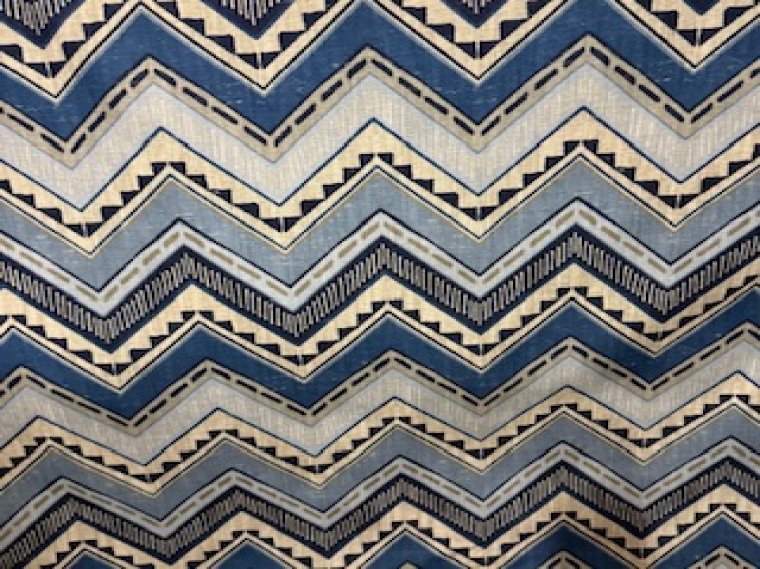 Absolutely striking and Gorgeous modern design in shades of blue woven into a cotton / linen fabric