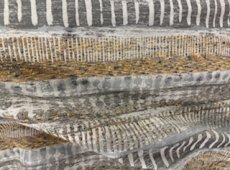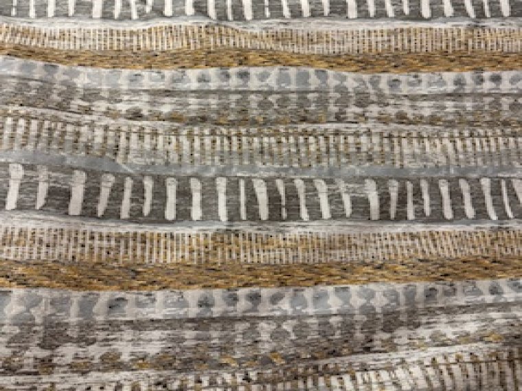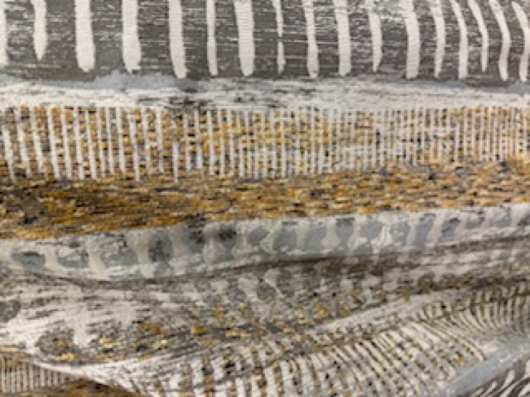 This is a stunning plush chenille striped fabric in neutral tones, grey, ivory and caramel.