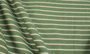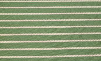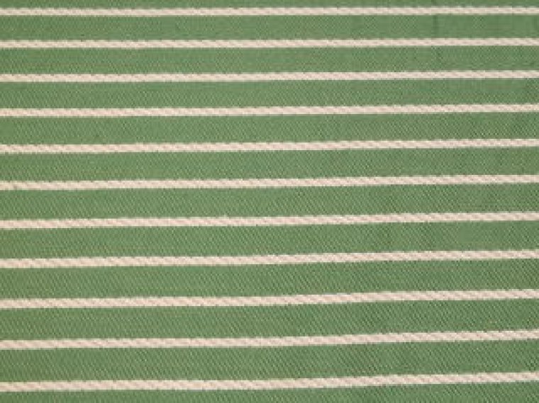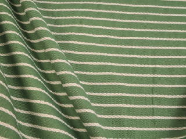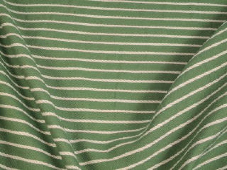 This is a high end Ralph Lauren woven striped fabric, done in green and white, quite modern looking, great for anything, such as upholstery, bedding, drapery and just about anything else that comes to mind. This fabric wears like iron, cleans up very easily, and our price is a fraction of the per yard price charged by designers.