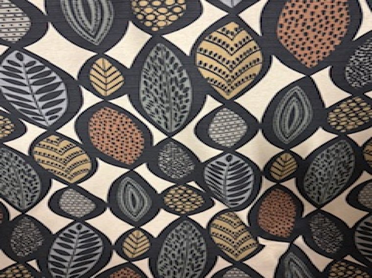 Absolutely striking and Gorgeous modern design in warm earthy shaded with a black outline woven into a cotton / linen fabric