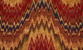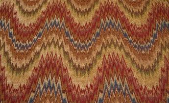 This fabulous flamestitch tapestry fabric is a cotton blend and has an 8 inch repeat. It is as soft as silk but is woven tightly which confers great durability to the fabric in both the horizontal and vertical directions. It is sold by designers for about five times our per yard price and has many, many uses. It also can be railroaded.