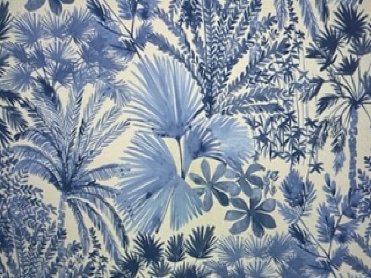 Blue and White Botanical cotton Floral Fabric, Upholstery, Curtains, Bedding