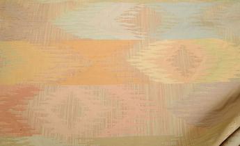 This is a gorgeous pastel colored, modern design tapestry fabric..........very, very durable and perfect for heavy use as upholstery, bedding and wonderful when made into drapery, pillows and much more. This fabric is sold by designesrs for about five times our per yard price.