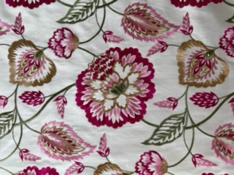 Exquisite Embroidered Floral Fabric on cotton Linen for Upholstery, drapes, bedding