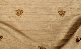 This is an amazing embroidered textured silk from Old World Weavers in a soft strie beige and antique gold embroidred bees. Perfect for any and every project.....a FORTUNE through designers when they can get it.....we make it affordable.