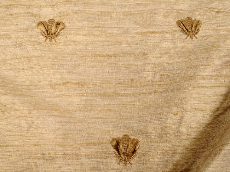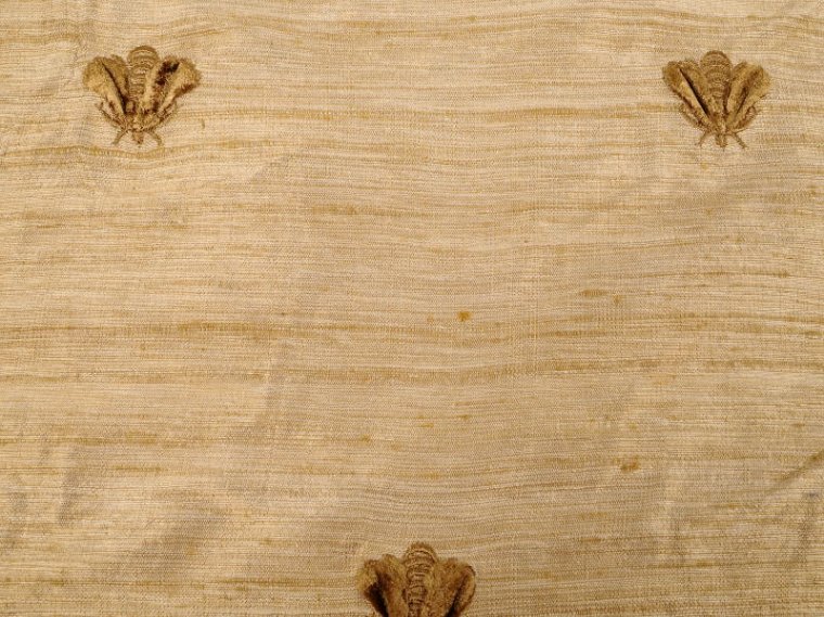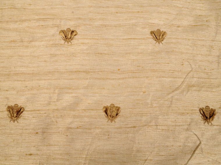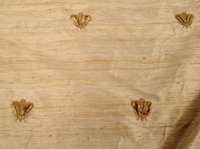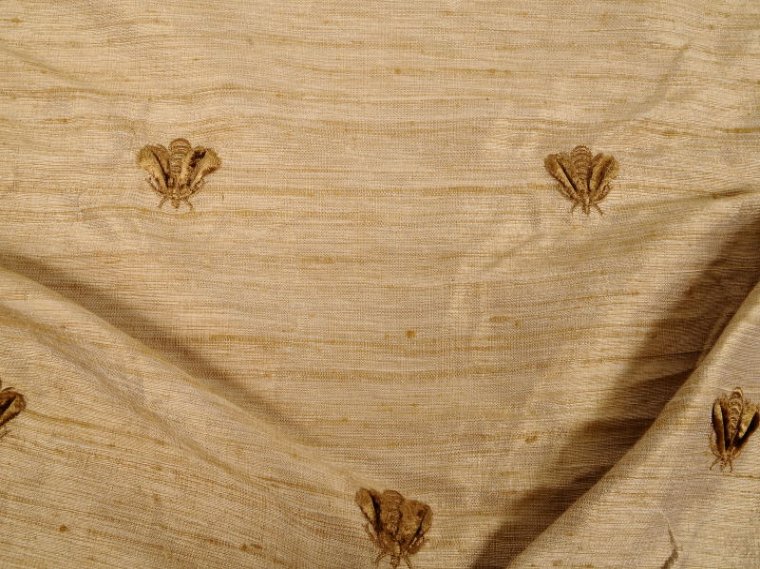 Fabulous Old World Weavers Soft Beige 100% Silk & Antique Golden Embroidered Bees for Drapery & Upholstery