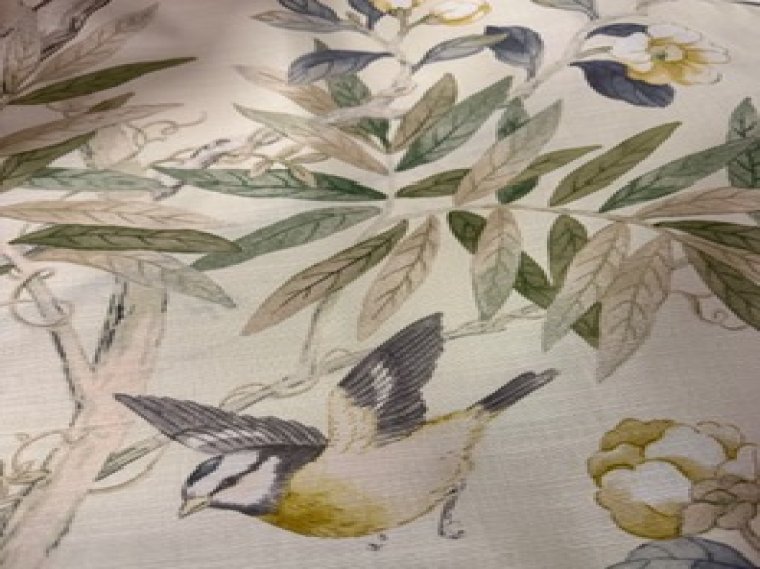 Delicate floral with birds and butterflies on 100% cotton fabric.