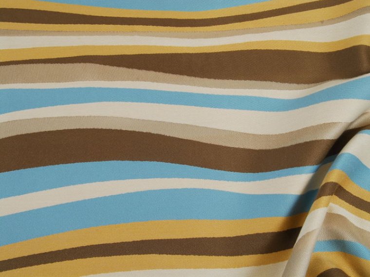 HIP Modern Blue Brown Caramel & ivory Stripe Designer Fabric, upholstery