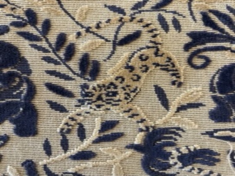 Name: Last Roll - 3D Elephants, Leopards and birds, Woven Tapestry, Italy, upholstery