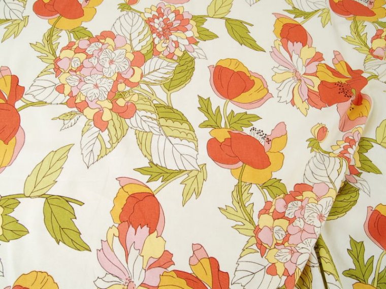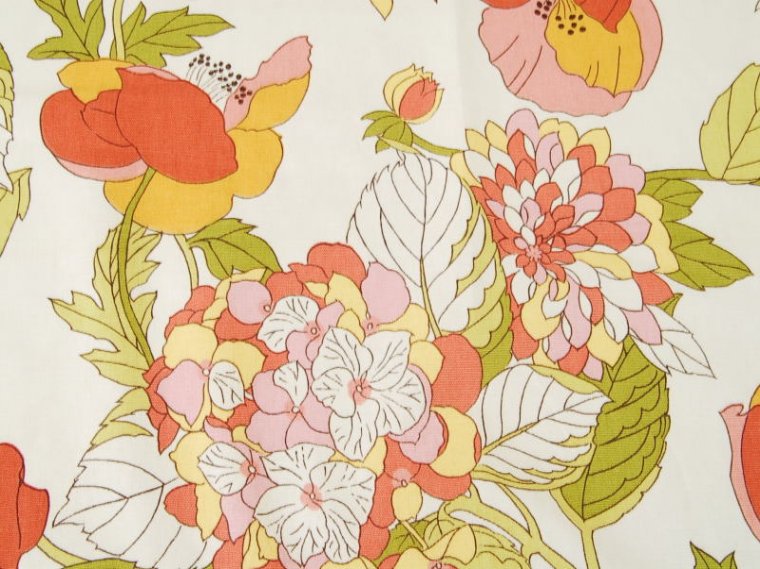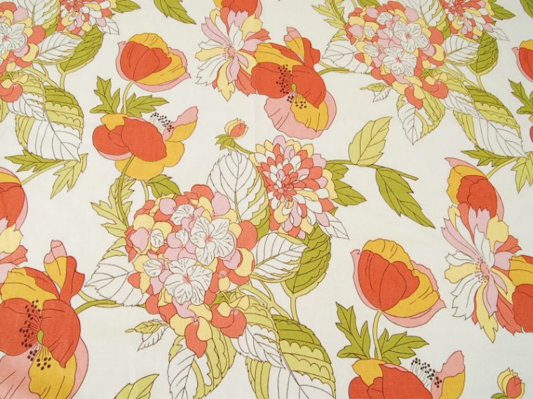 This is a wonderful floral done in sunny yellow, deeper yellow, sage and seagreen, coral, pink and white. This beautiful fabric will liven up any room and will make stunning draperies, upholstery, bedding and many other items. Our price is one fifth the designer per yard price for this pretty fabric. Enjoy!!!