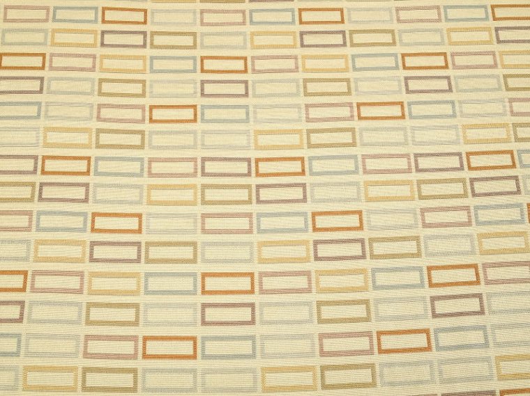 This is a wonderful contemporary design of rectangles on a cream basecloth with the rectangles woven in an array of colors including soft blue, plum, rose, yellow and aqua. Very tightly woven for strength and durability, this fabric will make a stunning sofa for an active home, drapery of all sorts, bedding and much more. sold here for one fifth the designer per yard price.