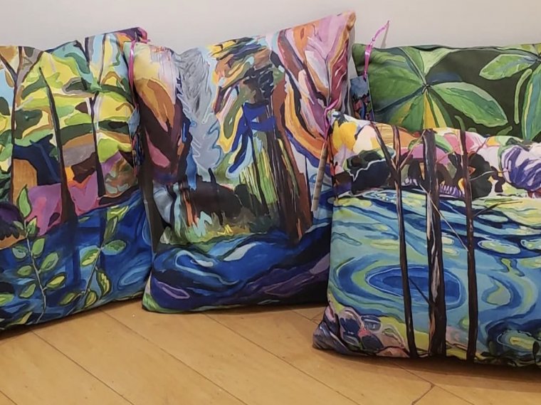 Artist hand painted this paintings and had them printed on Velveteen fabric.