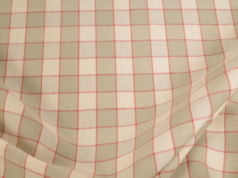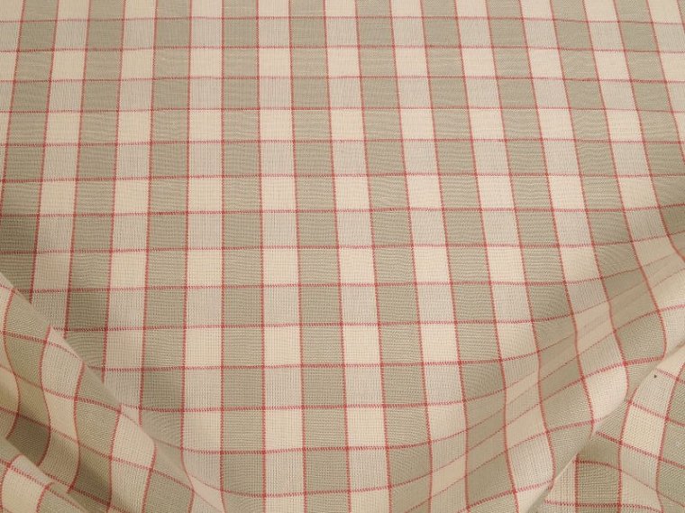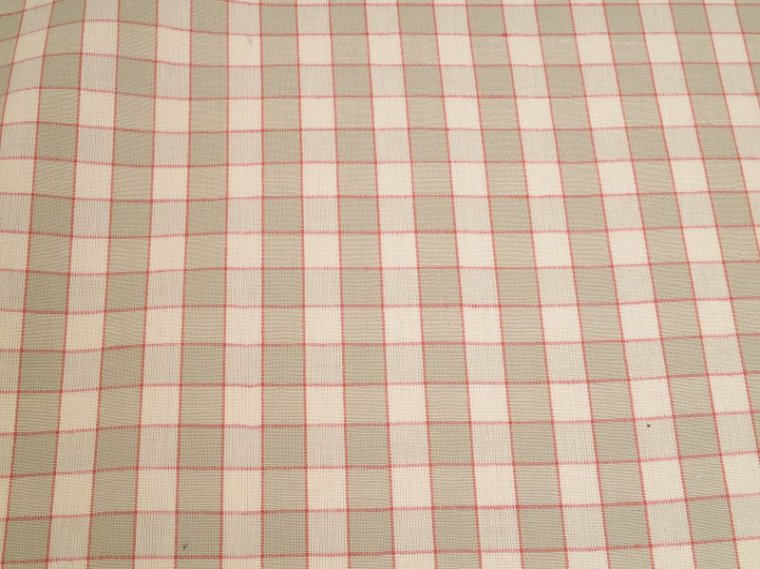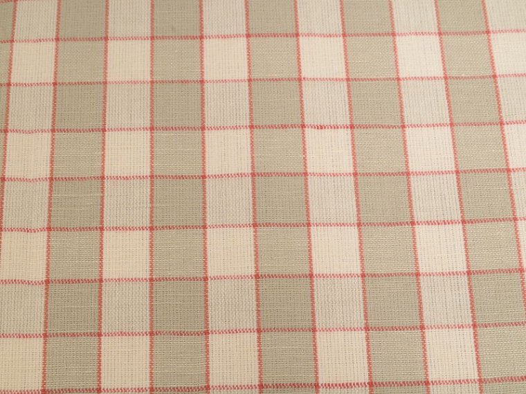 Rogers & Goffigon Cream & Taupe w/ Hint of Red Fabric in a Checked Pattern w/ Backing [IXS:I36]