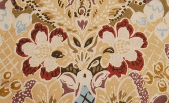 Name: ZANADU Modern Woven Cotton Floral in Beige, Gold & Purple Designer Fabric